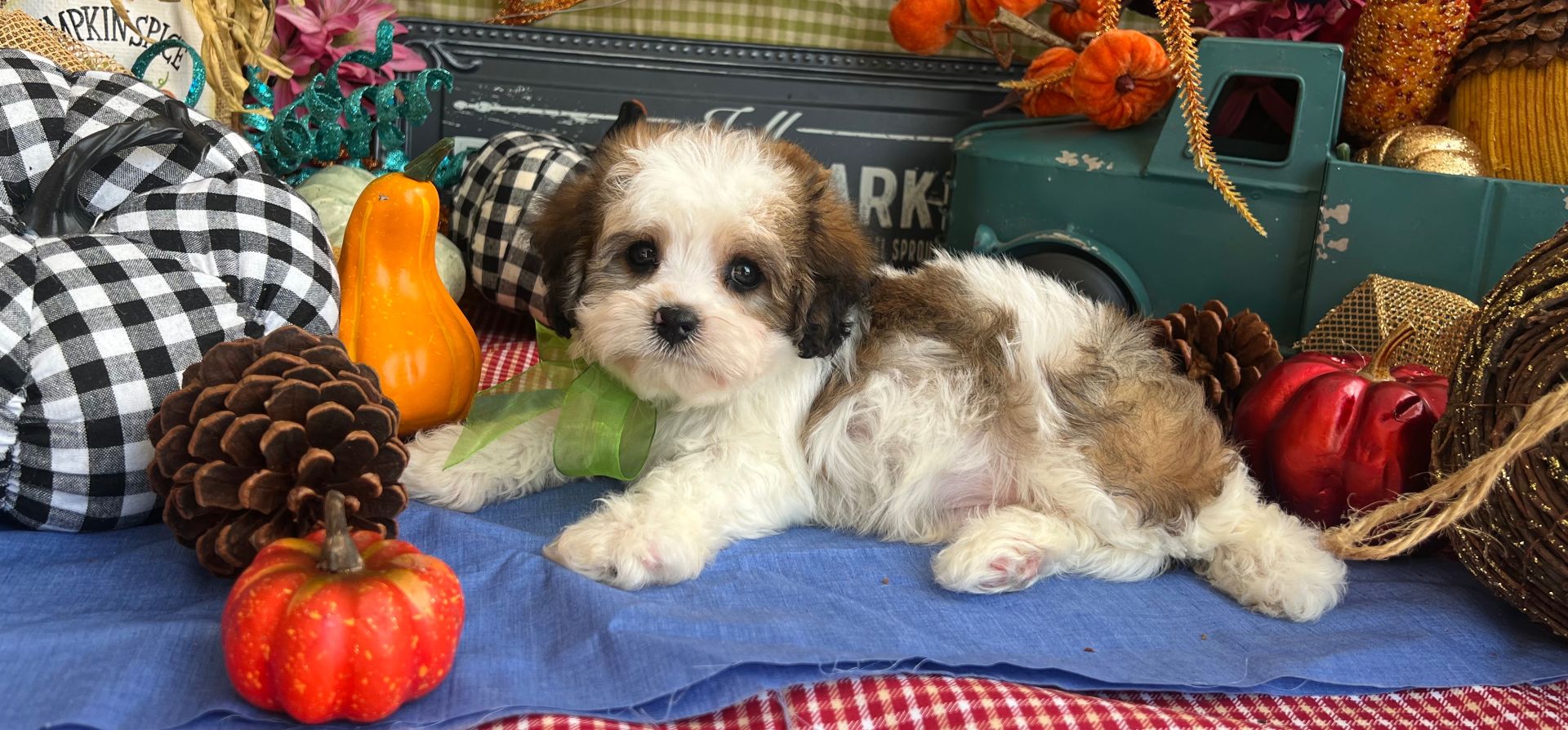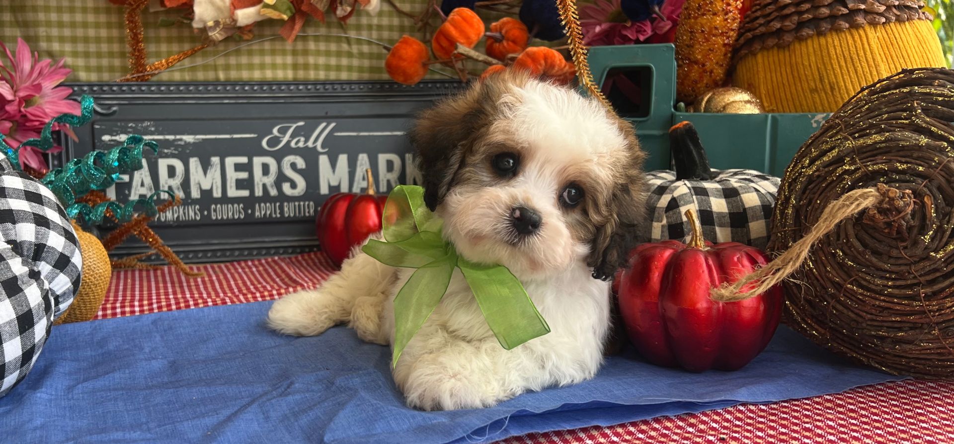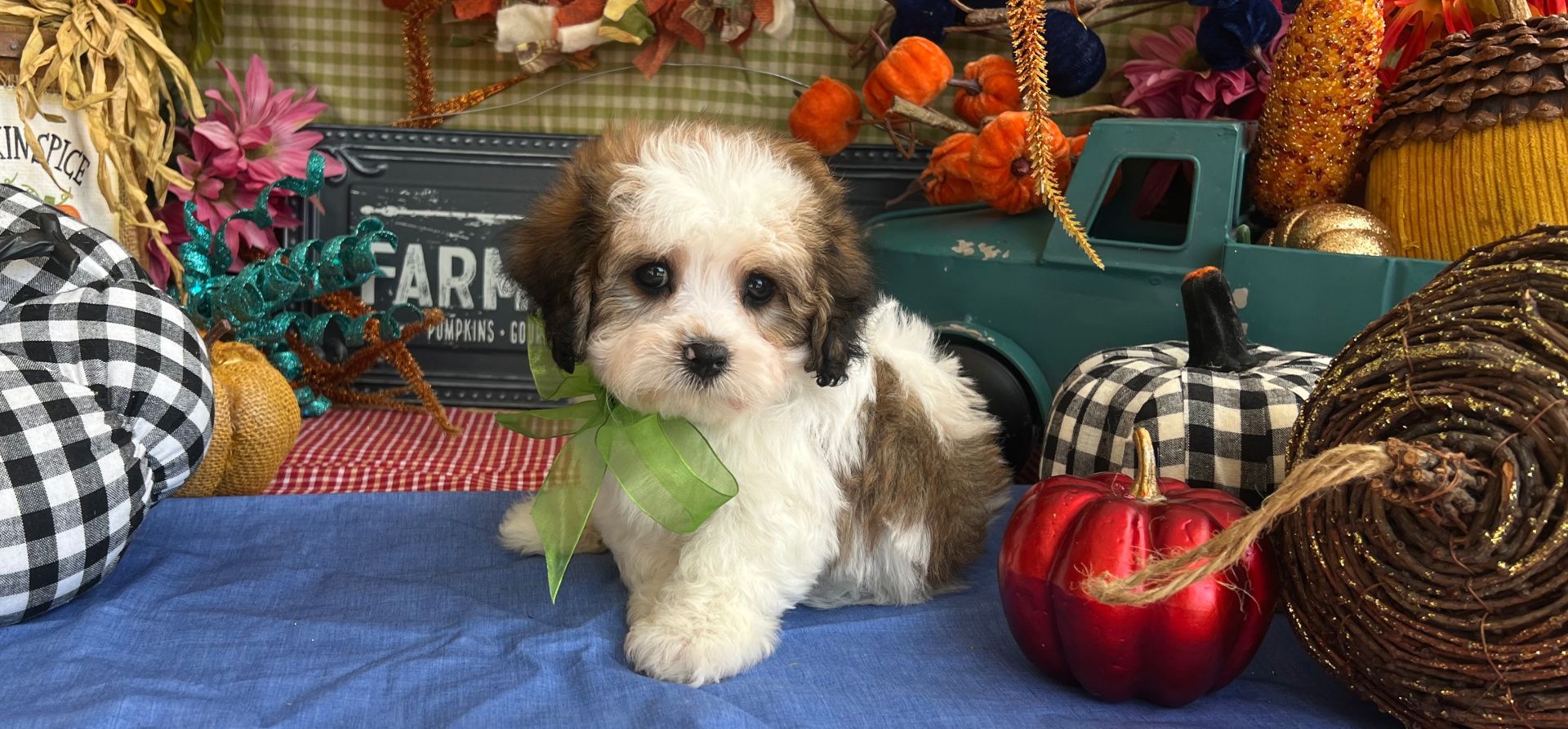 This handsome tri-colored Cavachon is the perfect mix of playful spirit and affectionate sweetness. Whether he’s pouncing after a favorite toy, exploring new corners with curiosity, or snuggling into your lap after a busy play session, Benji makes every moment better.