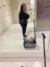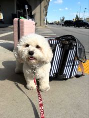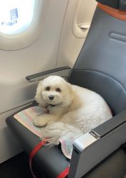 She loves every form of transportation: cars, trains, and planes. As a puppy, I traveled with her constantly in her carrier, and even though she no longer needs it now that she’s a registered service dog, she still absolutely loves it. I take it out the night before we travel and she gets so excited — and honestly, I don’t blame her. She knows it means she’s headed to the beach, to grandma and grandpa’s, or somewhere special.