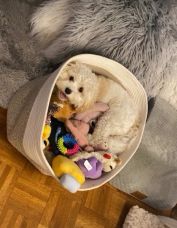 Brought to you by her mom, Perri, this is Sadie — a 3‑year‑old Cavachons by Design pup who spends most of her time in New York City, with the occasional trip to Long Island or Florida.