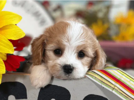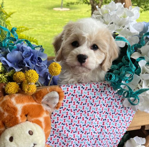 At Cavachons by Design, we’re thrilled to showcase some of our past Cavachon puppies, each lovingly raised with a focus on health, temperament, and exceptional quality. The adorable puppies featured on this page are from previous litters and are not available for adoption; they are shared to help you envision the beautiful variety of Cavachon coat colors and patterns—including Blenheim, tricolor, apricot, black and white, ruby, and more—that you may find in our future litters. As you scroll, you’ll see stunning examples of the Cavachon’s charming looks and sweet personalities.